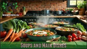 You’ll transform surplus vegetables into delicious meals through preserving, cooking, and creative preparation. Try zucchini noodles, roasted root vegetables, hearty soups, casseroles, and stir-fries to maximize your harvest’s potential.