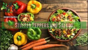 Transform your garden’s bounty into satisfying meals with creative stuffed peppers filled with quinoa, rice, or ground turkey.