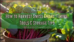 Timing truly makes a pivotal difference in your Swiss chard quality! Early morning harvest benefits include peak crispness and sweetness—you’ll capture leafy greens at their most hydrated. Heat stress prevention matters too, so avoid midday picking when temperatures soar.