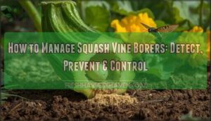 Like a patient on the operating table, an infested vine can survive with swift intervention. Early detection and immediate squash surgery—removing larvae before vascular collapse—offer your best shot at plant rescue and borer damage repair.