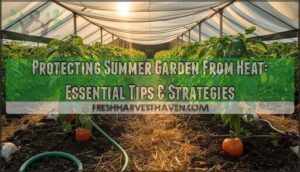 You’ll need a multi-layered approach to heat stress management for plants: use shade cloth for garden protection, apply mulch for soil cooling, water deeply to promote drought tolerance, and select heat-resilient varieties for lasting garden insulation.