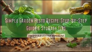 Once you’ve blended your garlic, basil, pine nuts, and Parmesan cheese, fine-tune your pesto recipe through emulsion control and texture testing. Add olive oil in a slow stream for proper oil balance—too much creates grease, too little feels chalky.